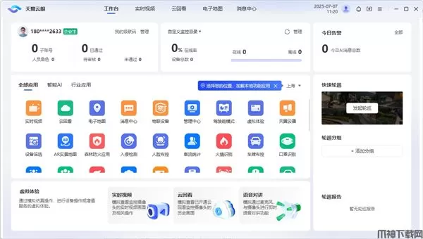 新增全新工作台模块,集企业管理、设备数据、套餐管理、应用管理等主界面入口,工作台分不同用户角色呈现。