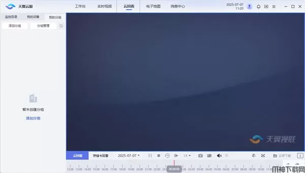 用户主界面采用业界流行的界面布局模式,界面主要分为工作台、实时视频、云回看、电子地图、消息中心。