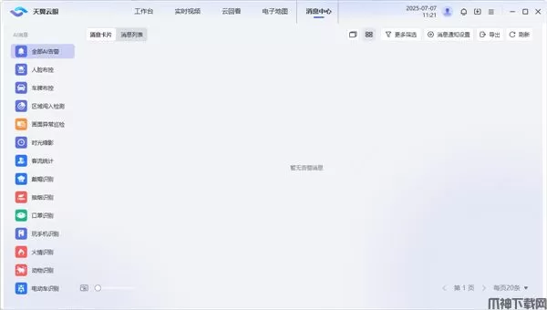 消息中心模块,用于查询四大类消息,包括设备上下线消息、移动侦测消息、AI服务单品的消息、行业应用的消息接收。