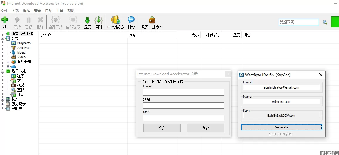 Internet Download Accelerator Pro(网络下载加速器)简称IDA,是一款实用的高速网络下载工具,作为一个与IDM(lnternet Download Manager)同类型的下载器,IDA的功能也十分丰富完善,