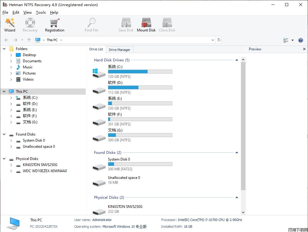 它可以在文件系统FAT,NTFS的控制下恢复数据硬盘和任何其他存储介质。实用程序集成复杂的算法来恢复名称,属性,文件内容和目录结构。