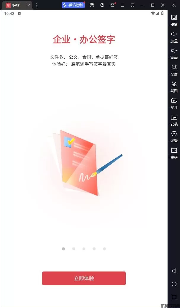 好签电脑版是需要借助模拟器在电脑上运行的一款签字办公软件。用户使用软件可以在Office文档、PDF文件以及各类图片上进行手写签名,准确还原笔迹,确保签署的真实性和可靠性,让用户无需打印文件,节省时间和资源。好签电脑版支持多人协作,用户可以邀请同事、朋友或合作伙伴一同使用,共同完成文件的审核和签署。
