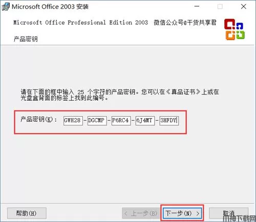 4、输入产品密钥【GWH28-DGCMP-P6RC4-6J4MT-3HFDY】,点击【下一步】。