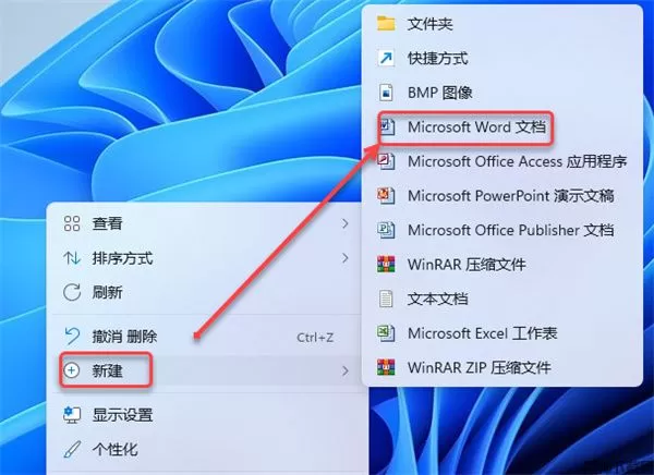 11、在桌面空白处,鼠标右击选择【新建】选择【Microsoft Word 文档】。
