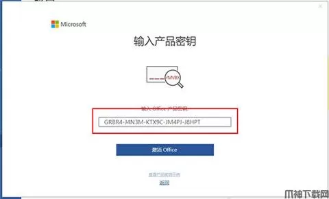 4、弹出输入office产品密钥,再输入office2019激活密钥【GRBR4-J4N3M-KTX9C-JM4PJ-J8HPT】