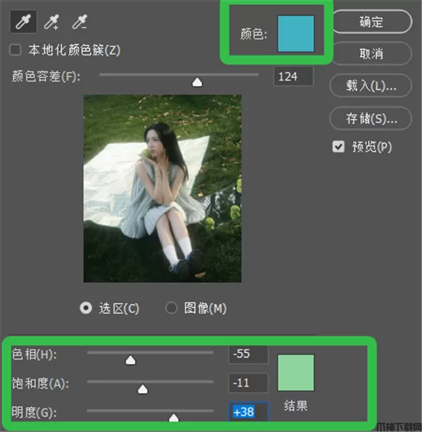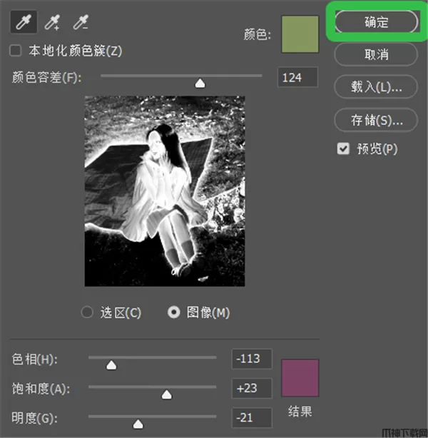 4、进入替换颜色对话框,先选中图片中需要替换的颜色。