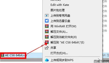 1、首先需要在本站下载after effects cs6中文版安装包,因为里面有汉化补丁,然后鼠标右键解压到“After Effects CS6”。