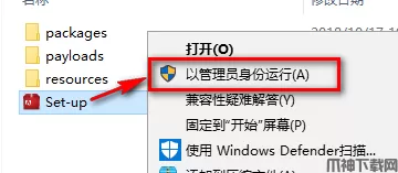 3、先断网,找到并选中Set-up,鼠标右键点击“以管理员身份运行”。
