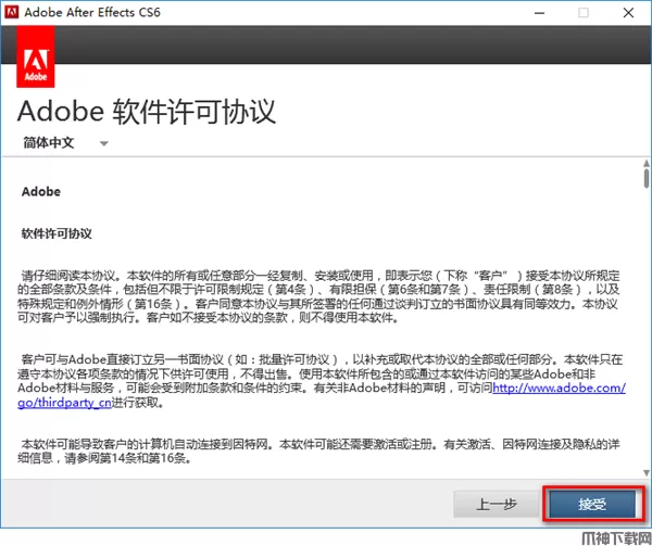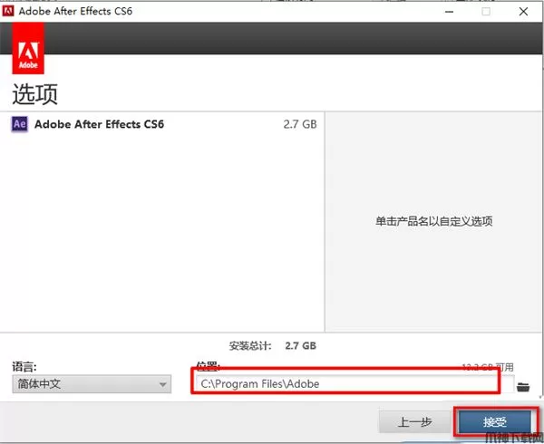 6、选择软件安装目录(默认安装在C:Program FilesAdobe),点击“安装”。