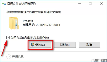 22、勾选为所有当前项目执行此操作,点击“继续”。