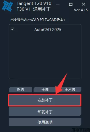9、补丁安装完毕后,点击软件图标运行并选择AutoCAD版本,点击确定。
