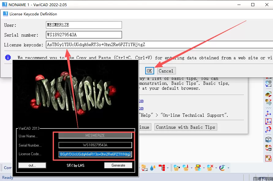 11、将激活文件中的序列号等信息复制到软件对应位置,点击OK。