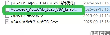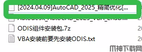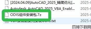 1、安装AutoCAD2025 VBA前,需先安装ODIS,解压【ODIS组件安装包】文件。