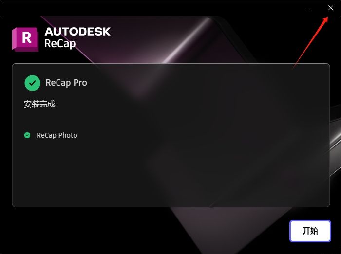 7、安装完成,不要点击【开始】,点击右上角的【x】关闭