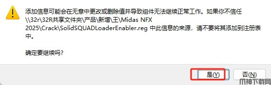 21、再次返回“Crack”文件夹,双击“SolidSQUADLoaderEnabler.reg”注册表文件。