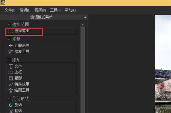 4、如需要将该图片的天空颜色变为其他颜色,点击左上角的选择范围按钮。