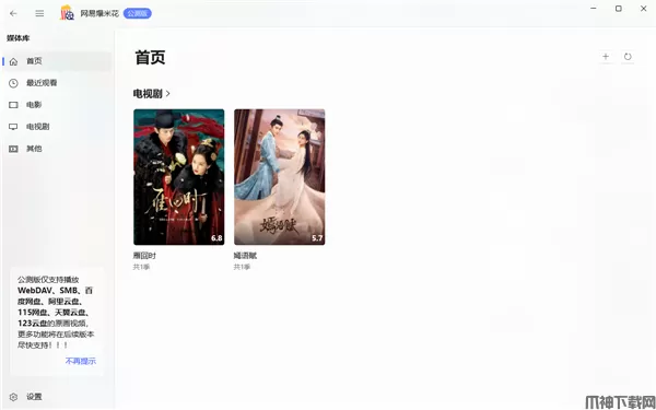 网易爆米花电脑版是由网易公司开发的一款全能视频播放器,聚合全网影视资源,为用户提供打造个人的私人影院。软件支持直连阿里云盘、百度网盘、115网盘、天翼云盘等主流网盘,还支持Emby、Jellyfin、飞牛影视等媒体服务器,用户也可导入本地的视频文件,一键即可播放、管理视频资源。