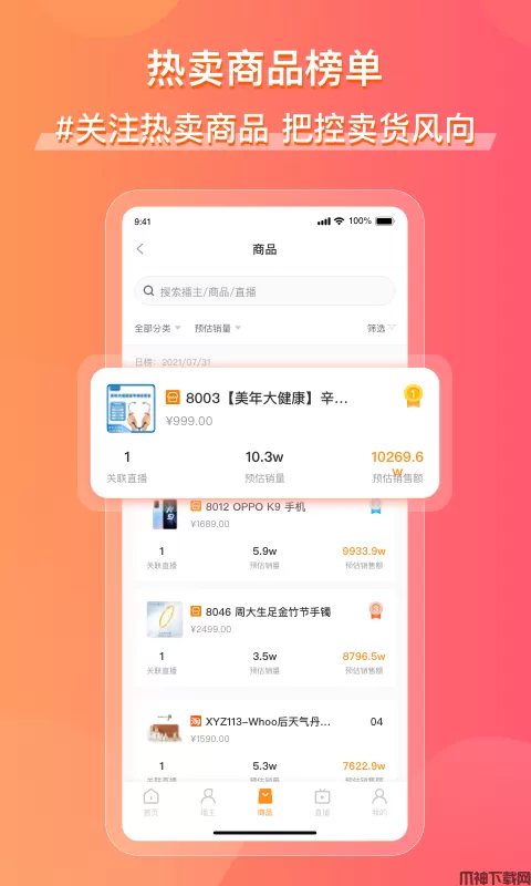 2、热卖商品榜单,关注热卖商品,把控卖货方向。