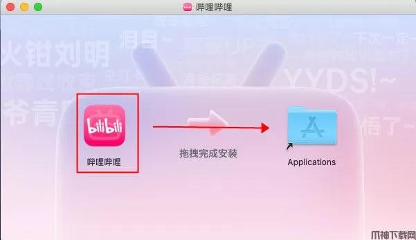 2、将哔哩哔哩应用程序拖入applications文件夹中。