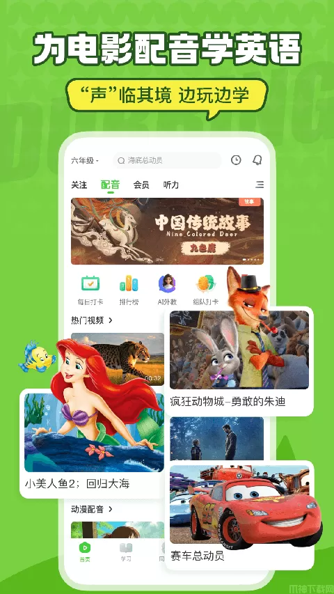 【互动学】设各类排行榜,和大神切磋pk,更可以邀请好友合作配音哦!