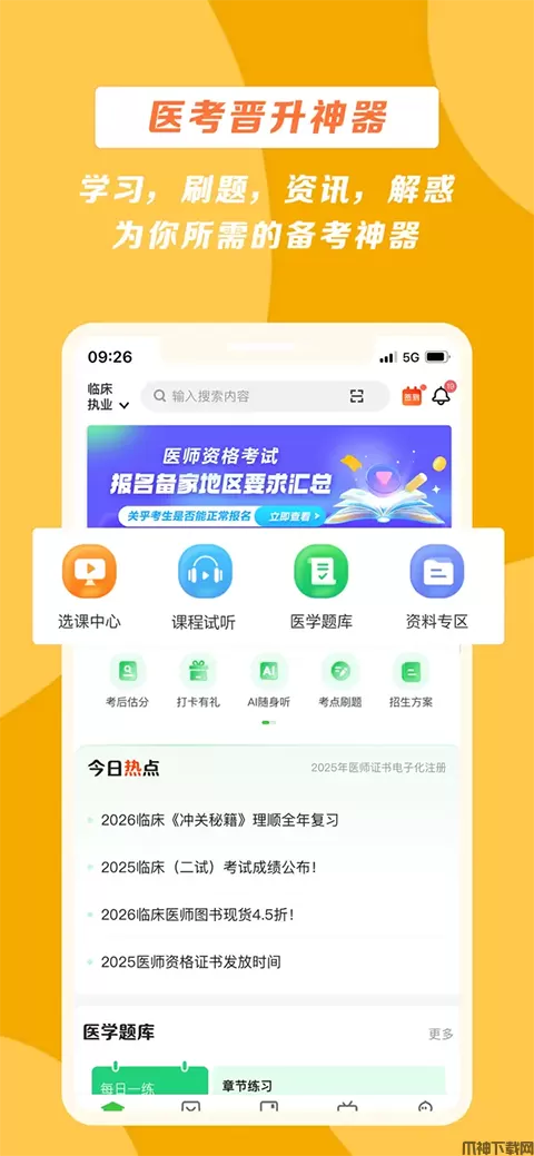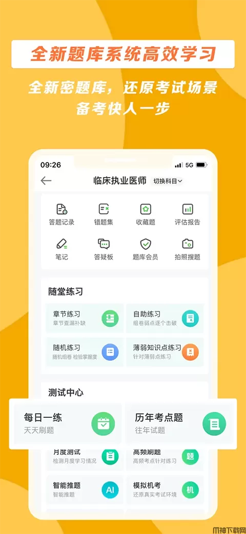 章节练习、知识点练习、网校模拟题、历年真题等均可通过手机实战演练,题型全面、贴近考试,准确掌握做题技巧及命题规律,医师资格、执药医师、护士资格、检验师全部包含哦。