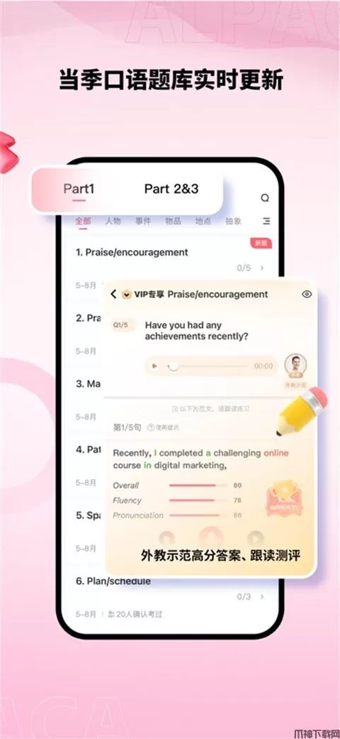 将口语练习分成了三部分,有阶段性,有目的性的帮助考生练习口语。
