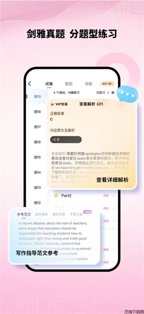 羊驼雅思备考ios版是一款专为想考雅思的人群打造的辅导提分软件,合理的练习分类和练习题收藏,让用户在不同场合也能充分利用时间,使用名师归纳整理的高质量的资料进行特定能力的训练。雅思热门高频练习题、口语考试场景模拟、预测题定期更新等功能贴近备考热门趋势,让考生信心满满参考。考生力荐雅思考试提分利器,提供专业及高性价比雅思课程,覆盖雅思口语、雅思听力、雅思阅读、雅思写作、雅思打卡全方位练习。提供剑桥雅思听力阅读真题练习,雅思口语话题及高频句式练习,雅思写作结构指导与分析,每月更新雅思口语&写作预测题库,高命中率,同时提供雅思名师免费课程及高分学员经验分享。羊驼雅思,让你轻松应对雅思考试,努力不白费!