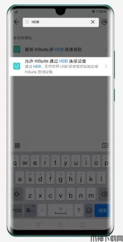 在搜索结果中点击“允许HiSuite通过HDB连接开启”