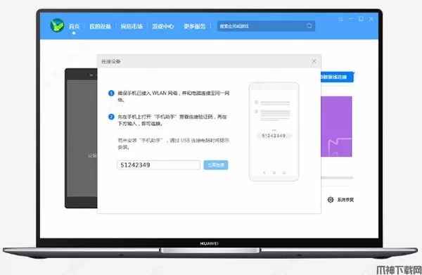 华为手机助手无需USB数据线,可通过Wi-Fi无线与设备建立连接并管理设备中的数据。