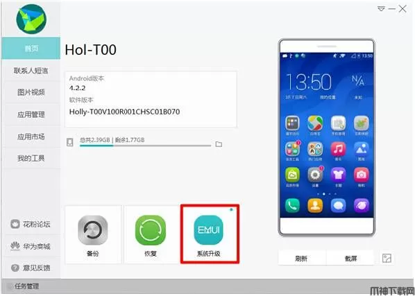 • 提供华为手机系统版本升级和回退功能