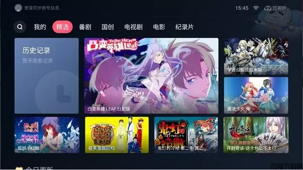 首先,我们来看TV版的界面,目前顶部导航只有七个[我的 精选 番剧 国创 电视剧 电影 纪录片]个人关注的UP主视频暂时无法直接使用TV客户端观看。