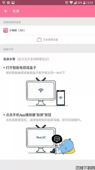 使用投屏功能 首先需要将手机APP的版本更新至5.27版本然后在手机播放视频时可以点击右上角的小电视图标选择投放到小电视即可~(要在同一个WIFI或局域网下才可以投屏哦)