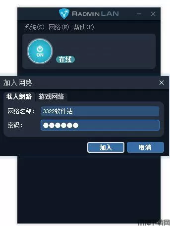 6、输入在被远程计算机上设置的网络名称和密码,单击“加入”按钮。