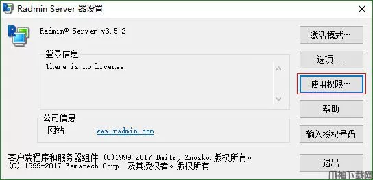 2、安装好后,进行配置 Radmin Server 服务器,点击“使用权限”
