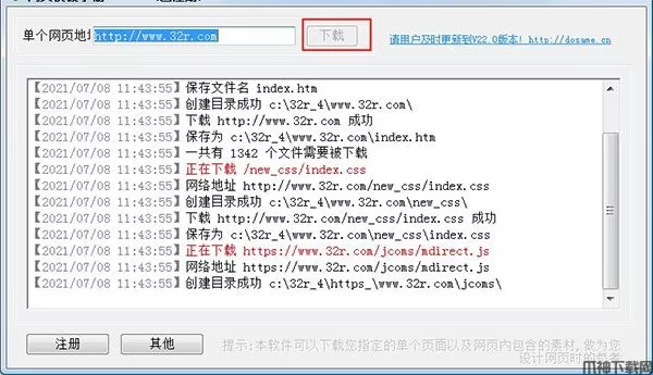 1、无需复杂的设置,输入目标网页URL,即可下载网页以及包含的各种元素。