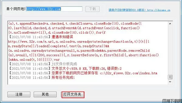 3、点击“打开文件夹”便可查看下载的网页元素;