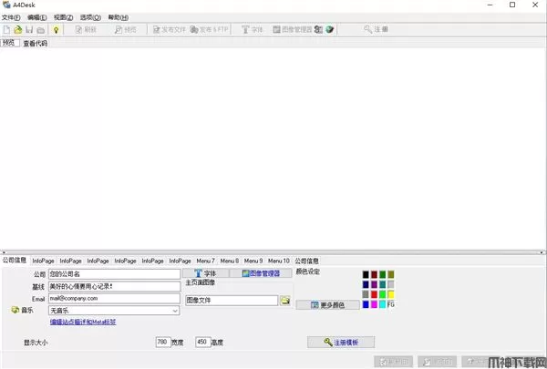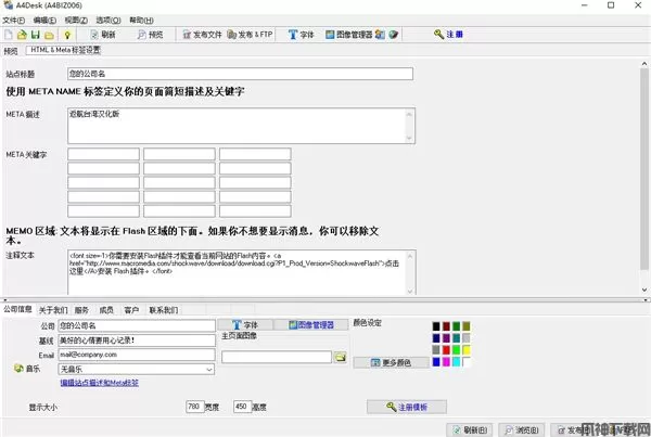 A4Desk是一款主要使用Flash技术的网站设计工具。虽然说移动端的FLash已经淘汰了。但是PC上的FLash依然还有很长的路要走。而且最关键的Flash设计的网站有着非常绚丽的效果。加上Flash多年的积累,已经有着非常多的优质资源。可以说能够非常方便的制作出一个精品网站。软件的使用非常的人性化,拥有非常贴心的向导帮助。可以帮助用户创建Flash 菜单和Flash 网站的Flash 设计、制作软件,它无需编码即可制作出美轮美奂的Flash ,是网站开发的好帮手。非常的强大。如果对细节有要求的朋友,还可以随时切换到代码状态。查看局部代码。而对于每个部件都可以进行属性设置。完成后,还能即时预览。所以,一定不要错过这款优秀的网站设计工具哦!
