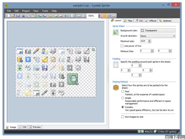 Cyotek Spriter是一款功能强大的切图自动化工具,尤其是对与CSS的网页设计人员来说帮助会非常的大,可以非常轻松的定制出网页的css模板,支持图片搜索功能以及其他网页制作功能,从此,制作一个精美绝伦的网页对你来说将非常简单。并且Cyotek Spriter还拥有一个可视化的操作界面,实时帮你掌握各方面的切图细节,从而进行有效的调整。Cyotek Spriter还支持对输出目录和输入目录的设置,非常人性化,无论你是学习,工作都可以给你不一样的网页开发体验
