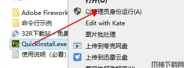 2、选中QuickInstall,鼠标右键选择 “以管理员身份运行”;