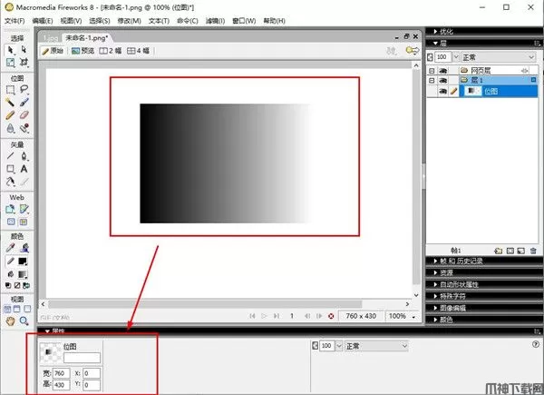 6、使用【渐变】工具,在画布右侧的选区中单击鼠标左键,渐变色即可填充到当前选区中。填充完毕,按快捷键【Ctrl+D】推出位图编辑模式。
