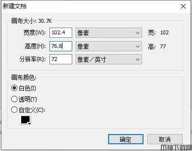 2、选择画布的大小,我这里设置的是102.4*76.8。