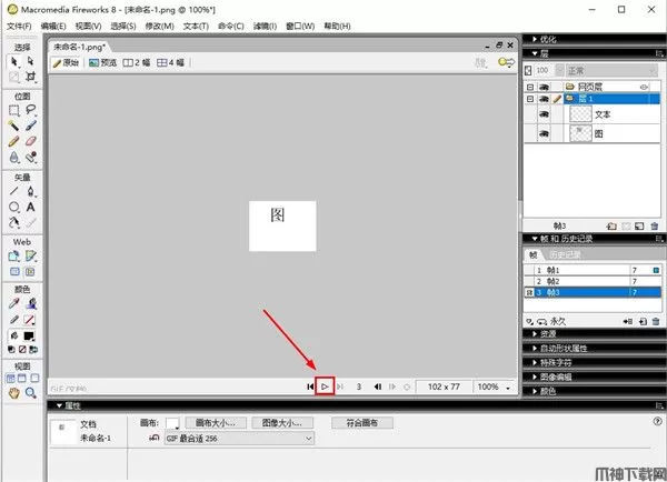 6、分别在新增的帧上写字,当然了,你可以导入图片的。我这里分别写上“态”、“图”,连起来就是“动态图”。