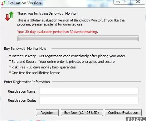Bandwidth Monitor自带日志功能,因此用户可随时准确的查看到每天、每周、每月的流量统计及使用情况,同时程序内置了速度秒表、传输速率记录器和带宽使用通知等大量的实用小工具,可帮助用户更好地了解到用户每个时期的流量使用情况。另外,Bandwidth Monitor支持可自定义带宽上限功能,可自行设置流量使用上限提醒功能,并支持同时监控多个网络了解,最重要的是该程序支持独立运行,不需要额外的任何驱动程序。