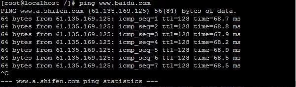 1、ping www.baidu.com,最粗糙的用法,此时主机将不停地向目的地址发送ICMP echo request数据包,直至你按下Ctrl+c