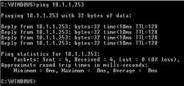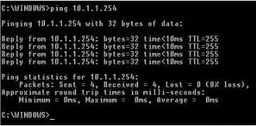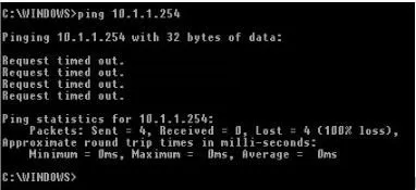 ping网关/路由器的IP地址,此例中网关/路由器的IP地址为:“10.1.1.254”