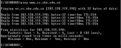 ping中心的主页服务器的域名“www.cc.shu.edu.cn”