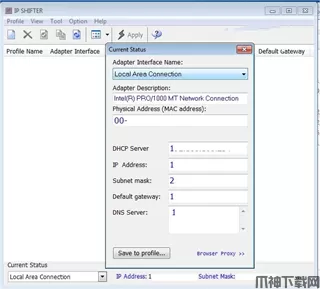 IP Shifter允许用户创建和管理多个网络配置文件,每个配置文件可以包含独立的IP地址、子网掩码、默认网关、DNS服务器等参数。用户可以根据需要添加、编辑、删除和切换不同的网络配置。