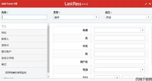 1、在Lastpass中“表单填写”,如果已经存在你也可以编辑原来的档案