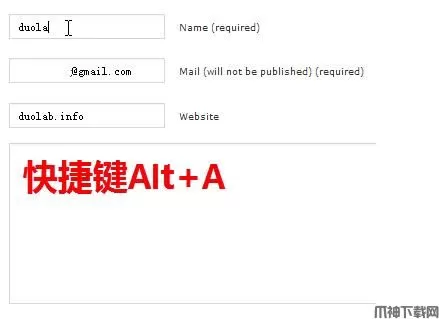 2、打开一个Wordpress博客测试刚才表单能否正常填写,将光标移至表单处,按下快捷键“Alt+A”,如下图效果