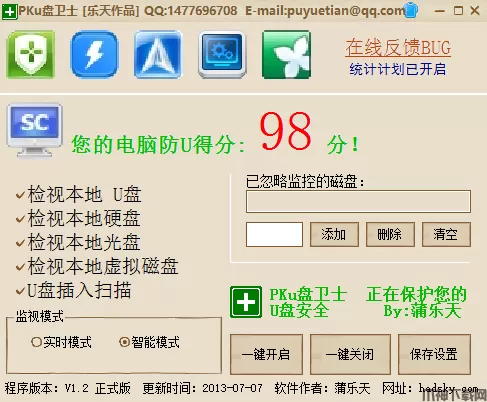 PKu盘卫士是一款方便易用的本地磁盘工具。我们都知道U盘中的文件有可能会携带病毒,而这款软件支持监视本地硬盘,监视本地光盘,监视本地虚拟磁盘,当你的电脑识别出u盘威胁后就会弹出提示,让你的电脑变得更加安全!